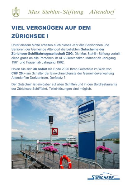 Jedes Jahr organisiert die Frauengemeinschaft einen Ausflug für Seniorinnen und Senioren unserer Gemeinde. Auf der Website der Frauengemeinschaft Altendorf oder im Pfarreiblatt finden Sie die Daten und Informationen.