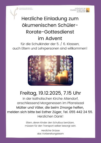 Ökumenische Roratefeier der 5. und 6. Klassen mit anschliessendem z'Morge im Pfarreisaal